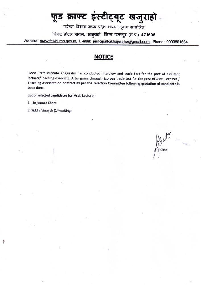 Under Department of Tourism, Government of Madhya Pradesh andAffiliated to National Council for Hotel Management Noida